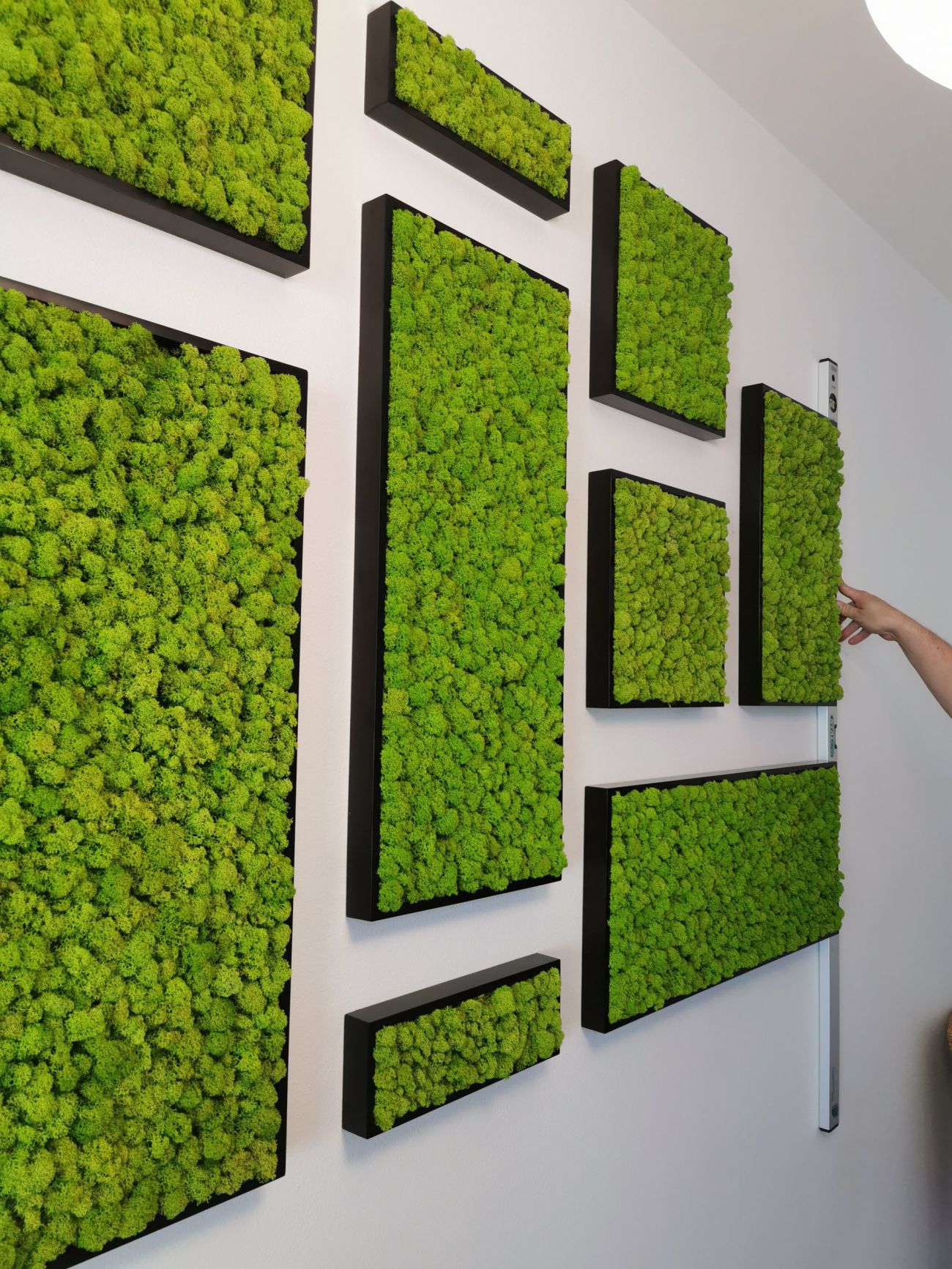 Ideální je smíchat několik druhů, základem je obvykle plochý tmavší mech na větší plochy kombinovaný se světlejšími odstíny kopečkového mechu, který dotváří unikátní 3D efekt. Inspiraci můžete ostatně načerpat přímo na stánkách společnosti Mechdekor, kde mimo jiné najdete i další druhy dekorací jako jsou například hodiny.