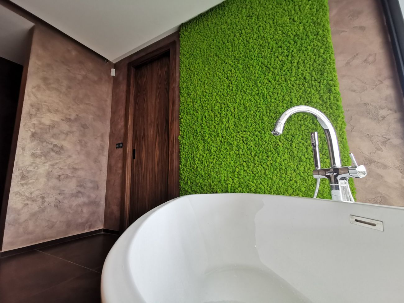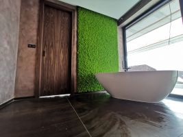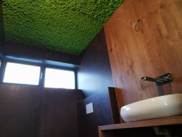 Mechové obrazy a dekorace se hodí do každého interiéru, třeba i do koupelny