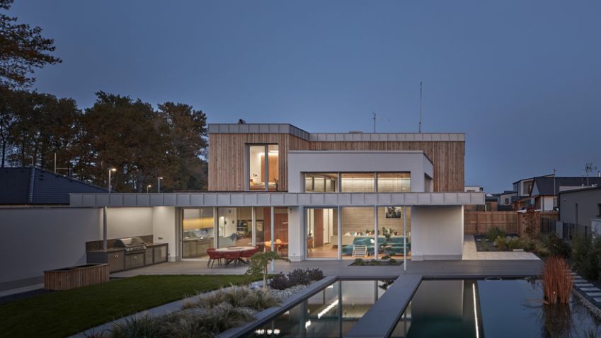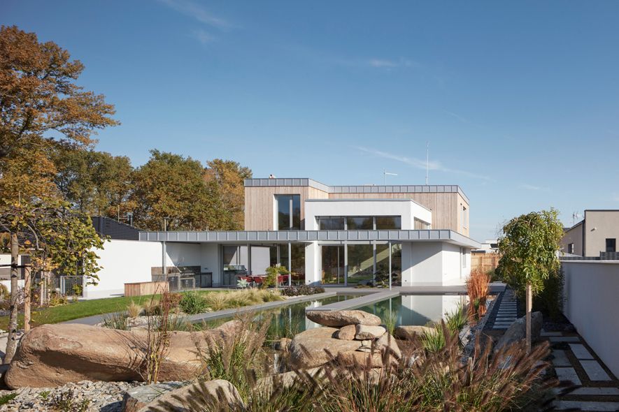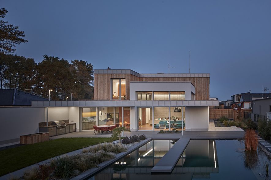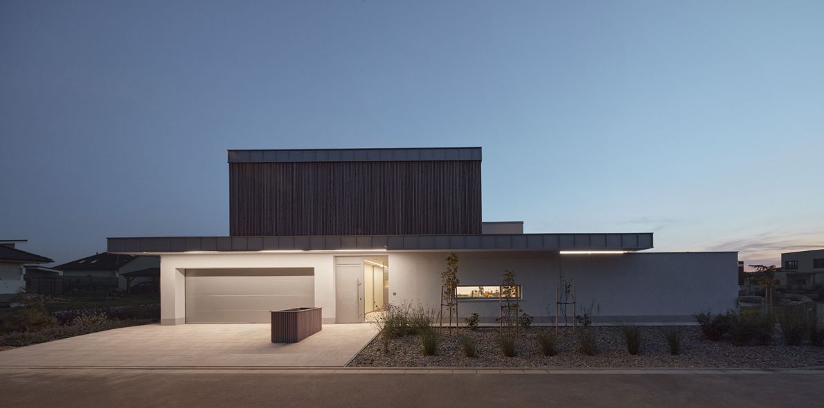 Zajímavý rodinný dům vyrostl v městské části Pardubice–Svítkov. Investor měl dvě hlavní přání, navrhnout moderní dům s členitou formou a uvnitř vytvořit výraznou betonovou stěnu. Výsledkem je nadčasový projekt se zajímavými detaily.
