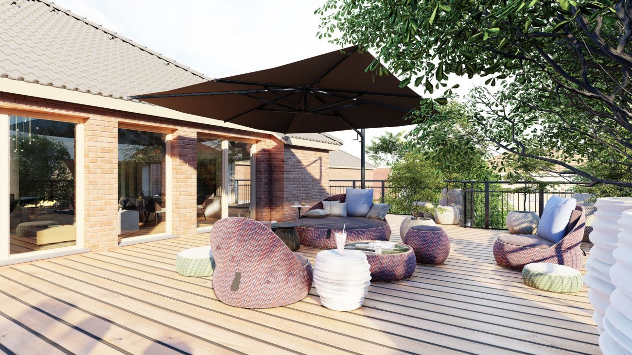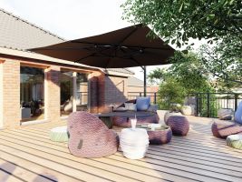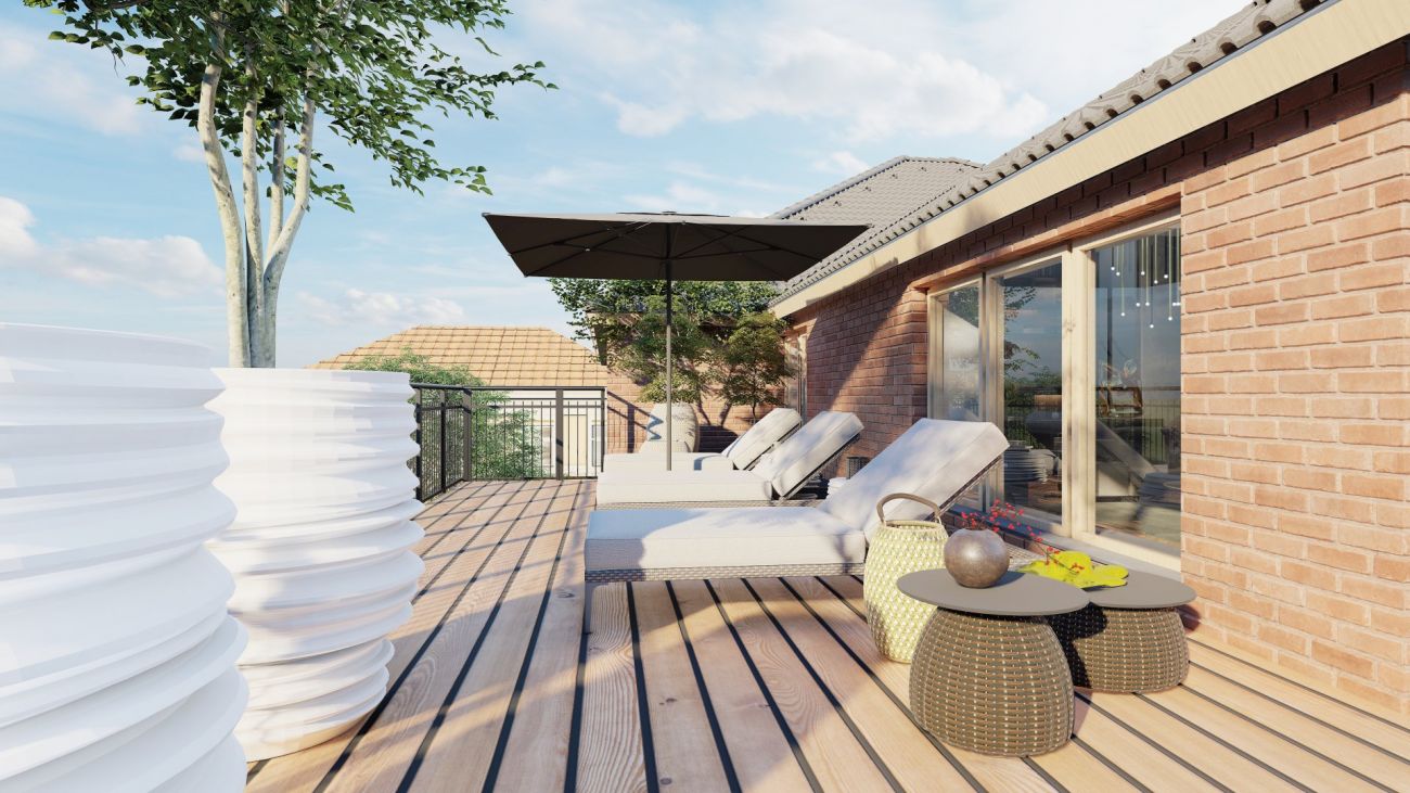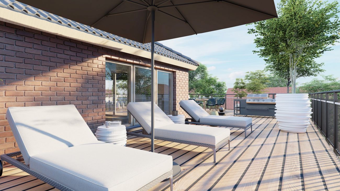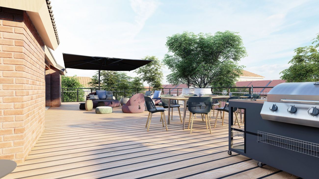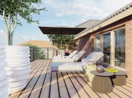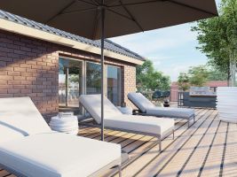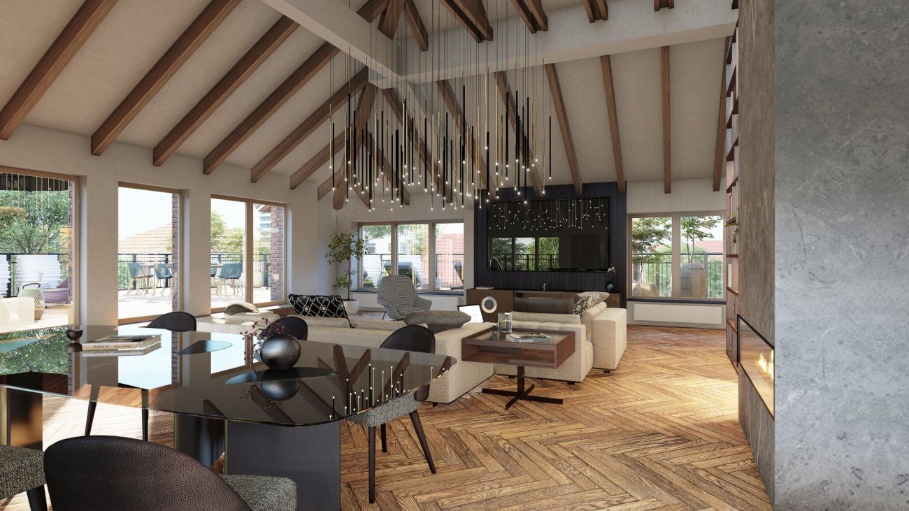 Rezidence Hradešínská je unikátní projekt, který nabízí 13 prostorných bytů. Celá rezidence je v prvorepublikovém stylu a dokonale zapadá do historického okolí Vinohrad. Jejím architektem byl Martin Pračka. Byt v nejvyšším podlaží o štědré ploše 360 metrů čtverečních doplňuje i neméně velkorysá terasa. Jak tento prostor využít dostala na starost bytová designérka Kateřina Kersey.