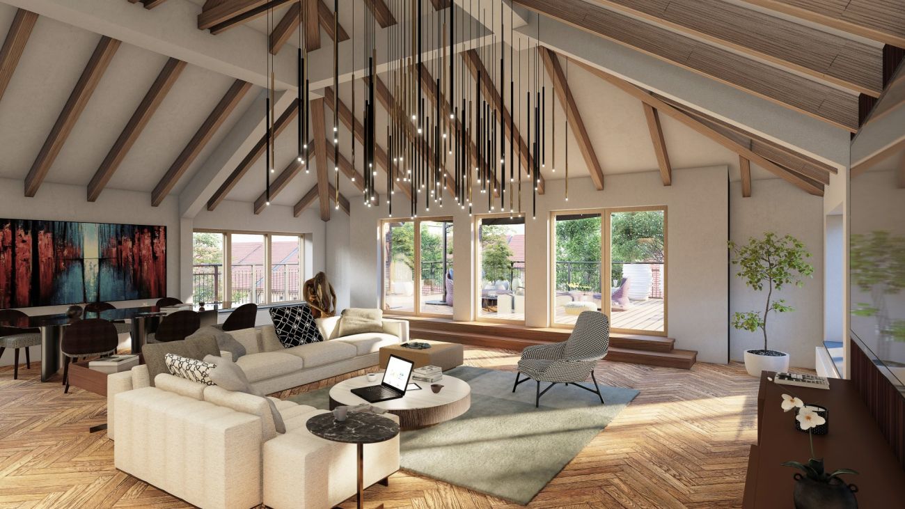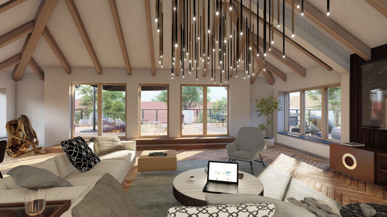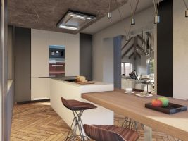 „Ten projekt je poměrně složitý. Má dvě patra, je různě průchozí, propletený a částečně ve velkém smyslu prosklený, nahoře jsou zešikmené části. Není to jednoduchý prostor. Jsou tam krásné původní trámy, které jsou zrenovované a parketová dubová podlaha. Zkrátka na tom základu jsme stavěli, chtěli jsme tomu dodat tu atmosféru, kouzlo a užitnost“ popisuje Kersey.