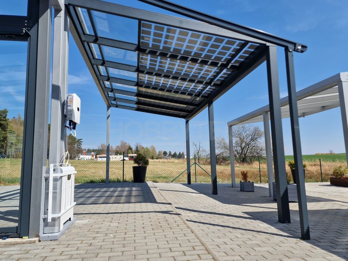 Například společnost Hobbytec vyvinula zastřešení a fotovoltaickou elektrárnu v jednom. Jedná se o funkční, a navíc velmi elegantní řešení, které vám do budoucna ušetří spoustu peněz. Vysoký výkon zajistí nejmodernější technologie.