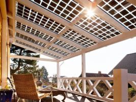 U zastřešení zahradní stavby, jako je například pergola, se majitelé nemusejí bát toho, že jim panely zamezí průnik světla na terasu, propustnost světla je totiž až 40%. Pergola navíc bude stále designová a bude vizuálně ladit se stavbou domu.