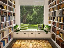 V knihovně si vytvořte správné místo k sezení v podobě čtecího koutku, který je důležitou součástí vaší domácí knihovny. Využijte velké křeslo, konferenční stolek, nebo jen sedací polštář a zpříjemněte si tak volné chvíle. Nápady, jak taková koutek zařídit, najdete ZDE.