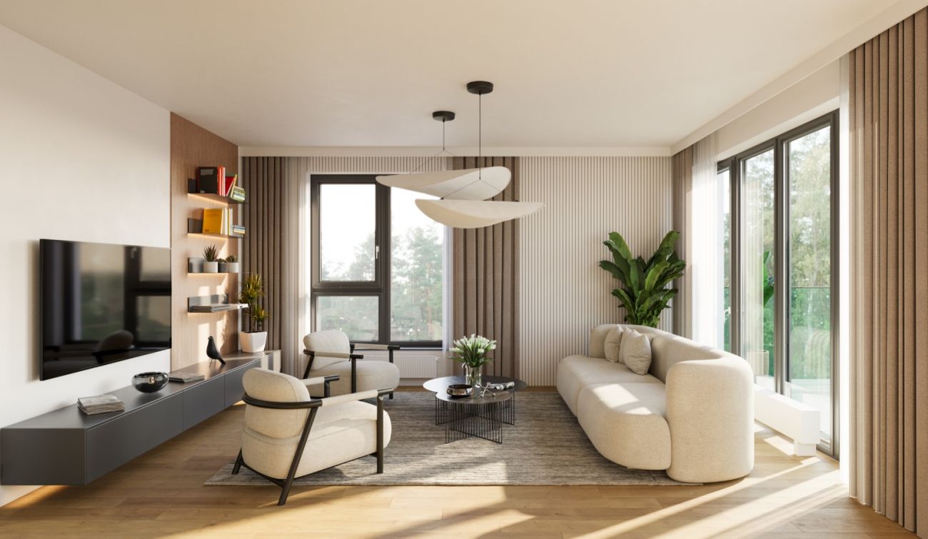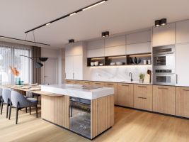 Interiérový design nových bytů zajišťuje vyšší komfort díky prostornějším dispozicím. Vysoký standard zajišťují vstupní bezpečnostní dveře, bezfalcové dveře v interiéru, okna s trojskly a dřevěné třívrstvé plovoucí podlahy v celém bytě. V koupelnách obyvatelé ocení keramickou slinutou dlažbu, kvalitní obklady do výšky podhledu a moderní „rimless" toaletu s krytým uchycením.