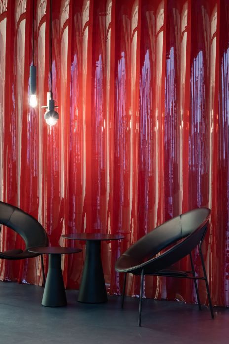 Dominantou nově vzniklého interiéru je výrazná červená barva, která se promítá jak v obložení z PVC lamel, tak na designových křeslech, která se nacházejí kolem masivního dřevěného stolu. Velmi výrazné je též svítidlo organického tvaru vytvořené na míru. Zajímavé je také uplatnění živých pokojových květin nejrůznějších druhů a velikostí. Květináče lemující celý obvod baru dodávají místu zvláštní atmosféru a útulnost.