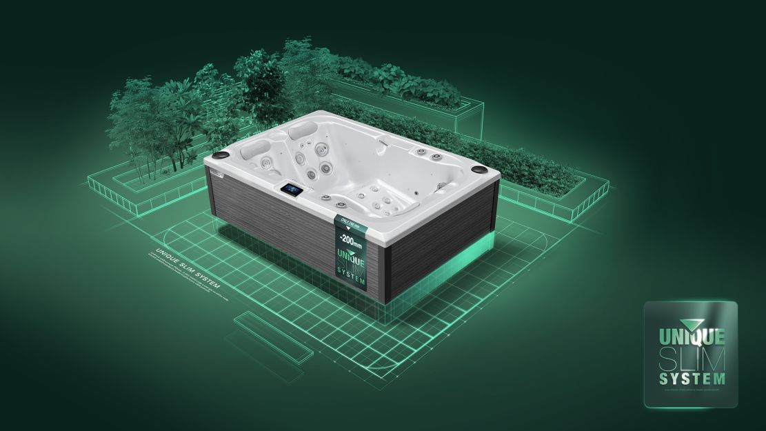 Nová kolekce Unique Slim System byla vytvořena tak, aby odpovídala potřebám současné architektury a developerských staveb. Vířivky mají ultra nízký profil od 74 cm, což je zásadní především pro instalace na terasách, balkonech, střechách nebo v prostorách s omezenou výškou. Zároveň nabízí plnohodnotnou vnitřní hloubku srovnatelnou s 90cm modely, přestože působí subtilněji.
