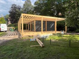 - terasa je z modřínových prken stejně jako konstrukce altánu s přírodní impregnací a nechá se přirozeně stárnout