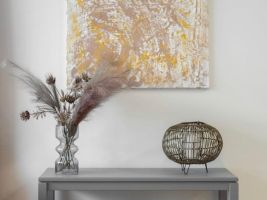 A pokud se stále nemůžete rozhodnout, zkuste si nechat udělat obraz na míru. Bude korespondovat s vaším interiérem i vaší osobností. Například obrazy designérky Lucie Volfové dovedou skvěle doladit interiér svou originalitou a osobitostí.