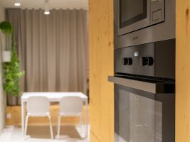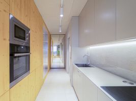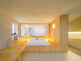 Klasický byt v osmém patře ostravského panelového domu dostal zcela nový rozměr. Atraktivní bydlení na celkem malém prostoru nabízí dokonce i saunu a zimní zahradu. Rekonstrukce změnila dispozici 3+1 na 2+kk, vznikl tak vzdušný a jednotný prostor s minimalistickým vybavením a výhledem na město. Byt nese trefně název Hnízdo.