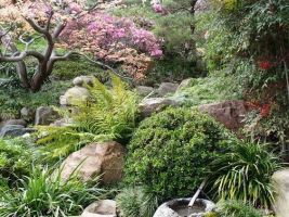 Hlavními barvami japonské zahrady je zelená ve všech odstínech, barvy kamene, dřeva, a výrazné růžové, červené a bílé odstíny květů a listů.