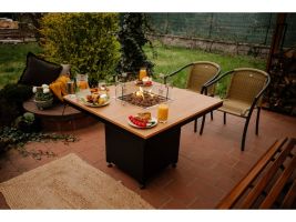 Ohniště Ruben Garden vyniká zase vrchní deskou z imitace dřeva, jedná se tak o spojení zahradního stolu, ohřívače a grilu. Díky své výšce nahradí zahradní stůl a sladí se s běžným zahradním nábytkem.