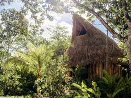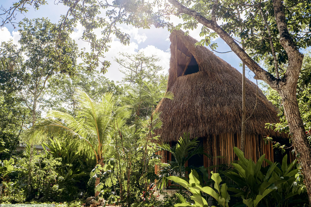 V rámci projektu vily v mexické džungli byl navržen i domeček pro hosty inspirovaný tradičními mayskými stavbami.