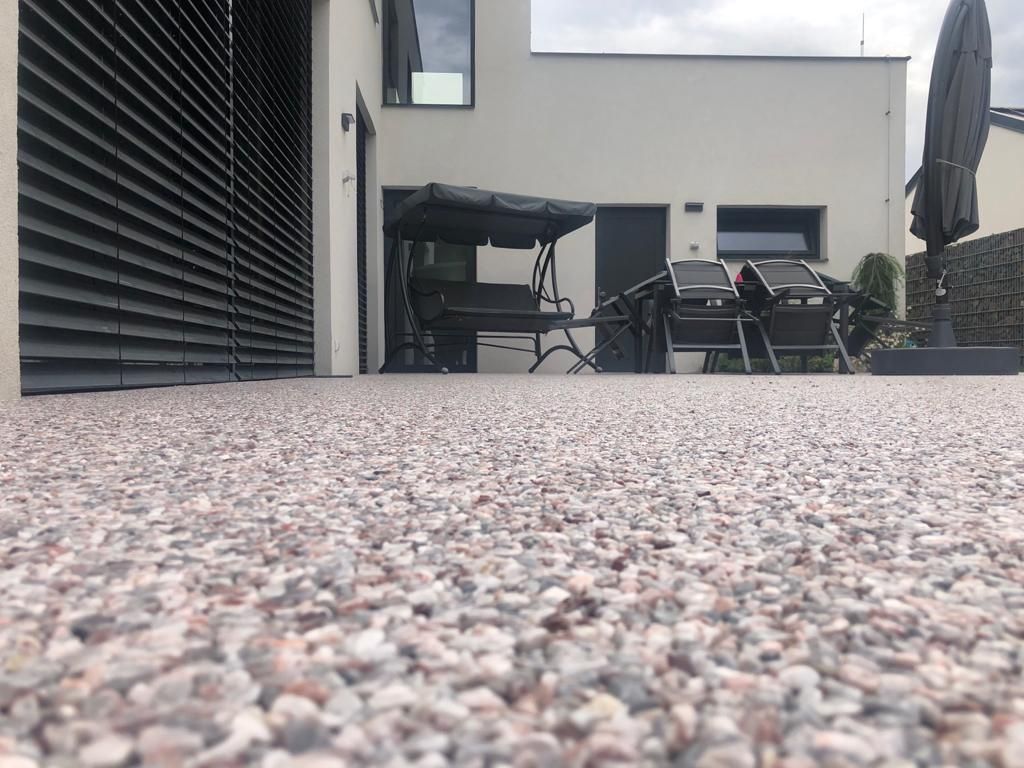 - EpoStone - vyniká svou pevností, je proto vhodný i pro pojezd, v kombinaci s říčními kamínky je skvělé do okolí bazénů se slanou vodou.