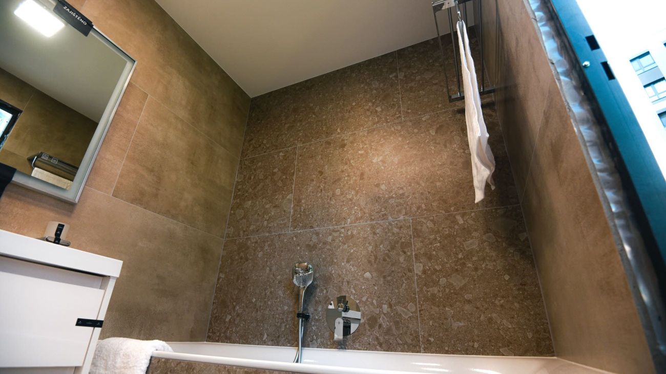 Hotový koupelnový modul byl na staveniště dopraven jako celek a pomocí jeřábu osazen až do patnáctého patra budovy. Díky prefabrikaci bylo možné samotnou instalaci výrazně urychlit a minimalizovat stavební práce přímo v objektu. Tento způsob realizace zároveň snižuje riziko chyb a nečekaných komplikací během výstavby.