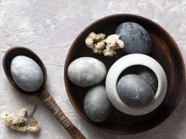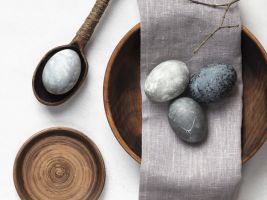 Letos proto při barvení vajec volte barvy, které najdete v přírodě. Vybírejte odstíny hnědé, béžové, šedé či přírodní zelené. Stačí najít paletu přirozených barev, které se k sobě hodí a jsou v harmonii.