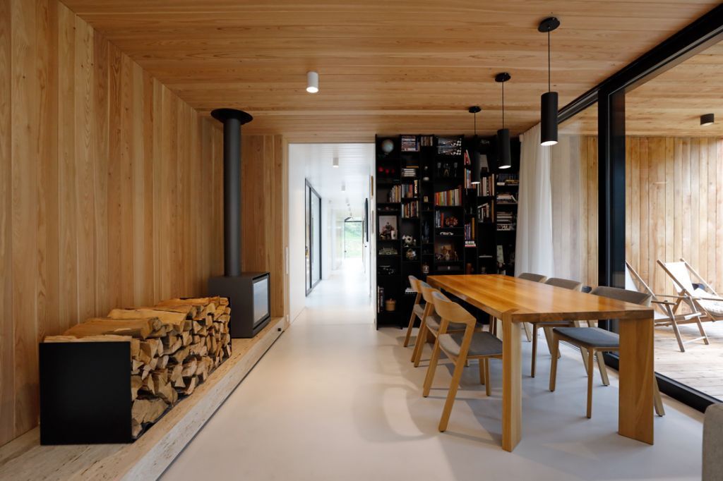Dům v Nevlekově nedaleko Prahy od architektů Michala Kunce (AKA) a Alžběty Vrabcové splynul díky své architektuře s klidným stylem venkova. Tento dům se sedlovou střechou představuje klasické architektonické pojetí rodinného domu. Vnitřek v sobě ovšem ukrývá naprosto současný pohodlný interiér moderního bungalovu, vzdušný prostor plný světla a průhledů do velké zahrady. Kompozičně jde o dvě budovy se stejným sklonem střechy a rozdílnou výškou, lehce od sebe uskočené a spojené proskleným krčkem. Barevná kompozice domu je velmi minimalistická, vychází z naší dlouholeté inspirace nordic stylem a Skandinávií. Konstrukčně se jedná o dřevostavbu, skeletový systém s instalační předstěnou. Fasády včetně šikmé střechy jsou provedeny starou japonskou technikou, jsou obaleny ručně hloubkově opalovanými modřínovými prkny. Dům je zvenku černý a uvnitř převážně bílý. Barevnost a design vytvářejí detaily a nábytek. Pohodu domu dotváří krb na dřevo a množství polštářů, dek a svíček v lampionech. Tento objekt získal několik významných ocenění včetně ceny za Inovativní dům roku.