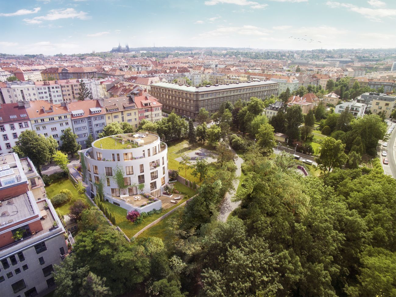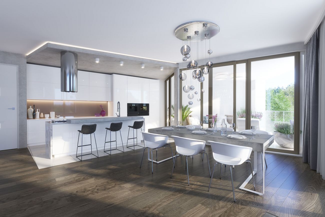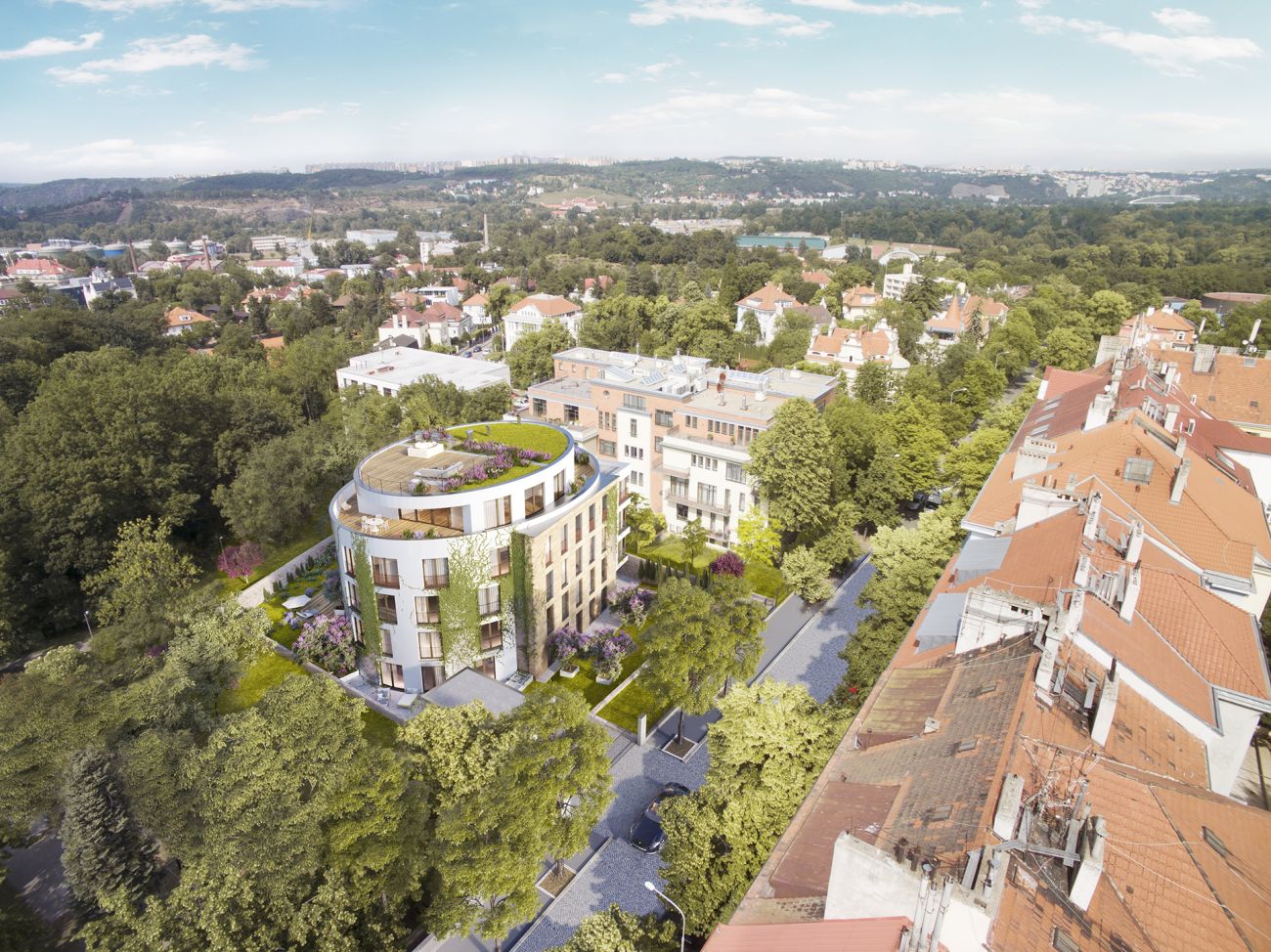 V budově s unikátním elipsovitým půdorysem se nenajdou dva shodné byty. „Každý je originální a vyniká svou jedinečností. Bytové jednotky jsou navrženy jako otevřené obytné plochy s velkými ložnicemi se šatnami a koupelnami. Součástí bytů jsou lodžie či samostatné zatravněné plochy s terasami s výhledem do okolní zeleně,“ popisuje vedoucí obchodního oddělení Natland Real Estate Šárka Kloučková.