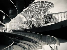 Srdcem pavilonu je pak kašna, do které stéká voda z organických kapilár vyrobených ze stejného materiálu jako spletený mrak stínící zahradu okolo národního pavilonu.