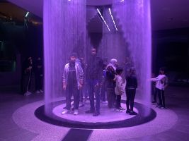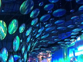 Hned u vstupu mohou návštěvníci vidět uměleckou expozici českého designového skla, kterou vyrobila podle návrhu Maxima Velčovského společnost LASVIT.