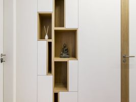 Byt pro mladou rodinu s dvěma dětmi má dispozici 3+kk, výhodou je to, že jde rozdělit na dvě samostatné menší bytové jednotky. Přáním majitelů bylo vytvořit na 99m2 moderní vzdušný interiér s dostatkem úložného prostoru.