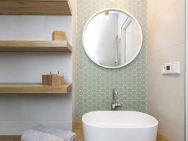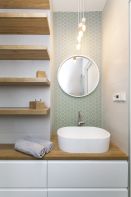 „Zde jsme se hodně snažili pracovat s původními materiály a zachovat stávající principy. Jsou zde například původní podlahy či dveře. Do prostoru jsme ale vstoupili i s novými moderními prvky. Hodně jsme pracovali s detaily a oblými křivkami tak, aby vznikl prostorný a ničím nerušený interiér,“ říká architekt Šimon Vojtík.