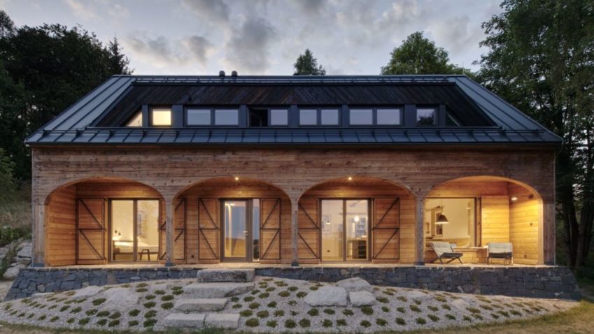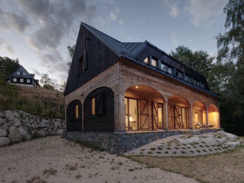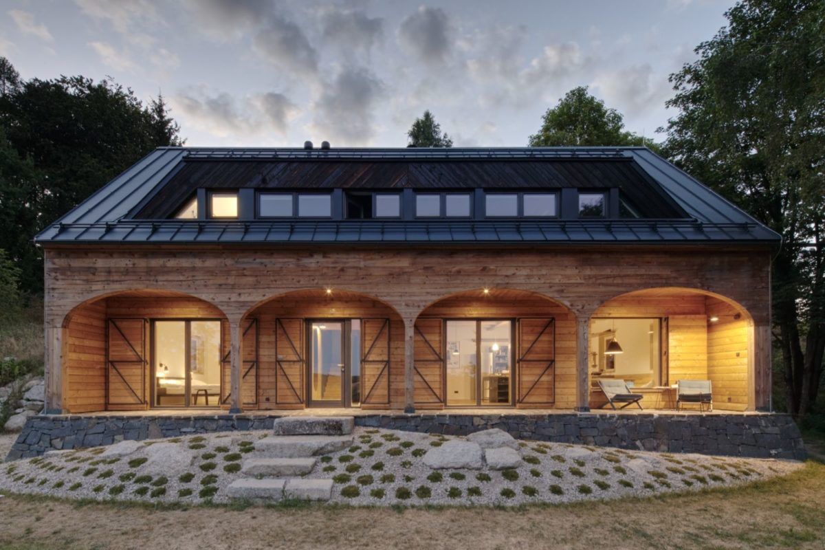 Přírodní materiály, respekt k tradici a moderní design, to vše propojuje unikátní stavba rodinného domu v Jizerských horách, která perfektně zapadá do okolní krajiny. Součástí objektu je samostatně stojící stodola z lokální žuly. Obě stavby na první pohled působí, jako by zde stály už dlouhá léta, až bližší pohled odhalí, že jde o moderní novostavby. Autorem návrhu je ateliér Labor 13.