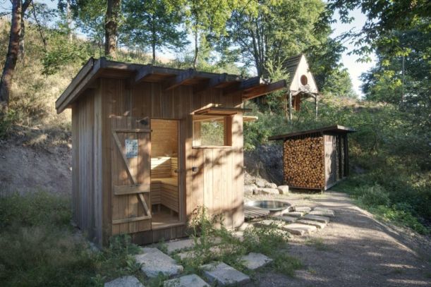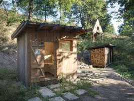 V rámci stavby proběhly i terénní a zahradnické úpravy v přilehlém okolí domu. Součástí stavby jsou i dvě vedlejší stavby, kde se nachází sauna a útulna pro přespání.