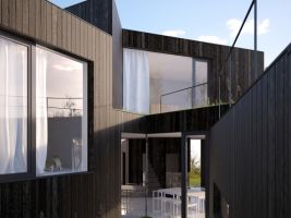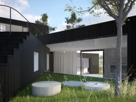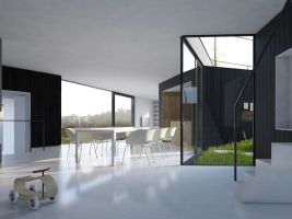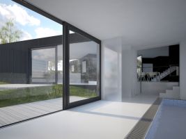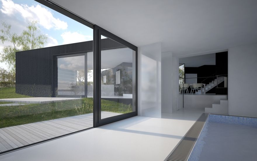 Zajímavě je řešené také provázání exteriéru s interiérem. Dům doslova expanduje do zahrady a zahrada do domu. Velmi zajímavé je pak to, že majitelé vlastně koukají ze svého domu na svůj dům.
