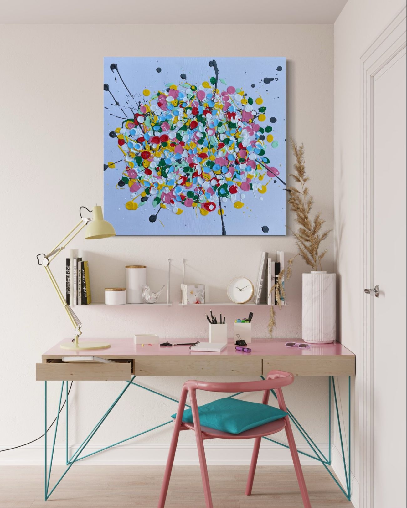 „Jsou 2 typy zákazníků. První typ mi sdělí to, že chce, aby obraz vyzařoval jeho osobnost a hodil se barevně do jeho interiéru. Což je fajn, protože interiér by měl být tvořen na základě osobnosti klienta. Je to taková psychologie, dokonce i podle oblečení poznám osobnost klienta a odhadnu jeho styl. Druhý typ zákazníka mi pošle fotku interiéru, kde by měl obraz viset a nechá vše na mě. Pokud se tedy jedná o obraz na míru pro klienta, vždy mě ovlivní jeho interiér a jeho osobnost.“