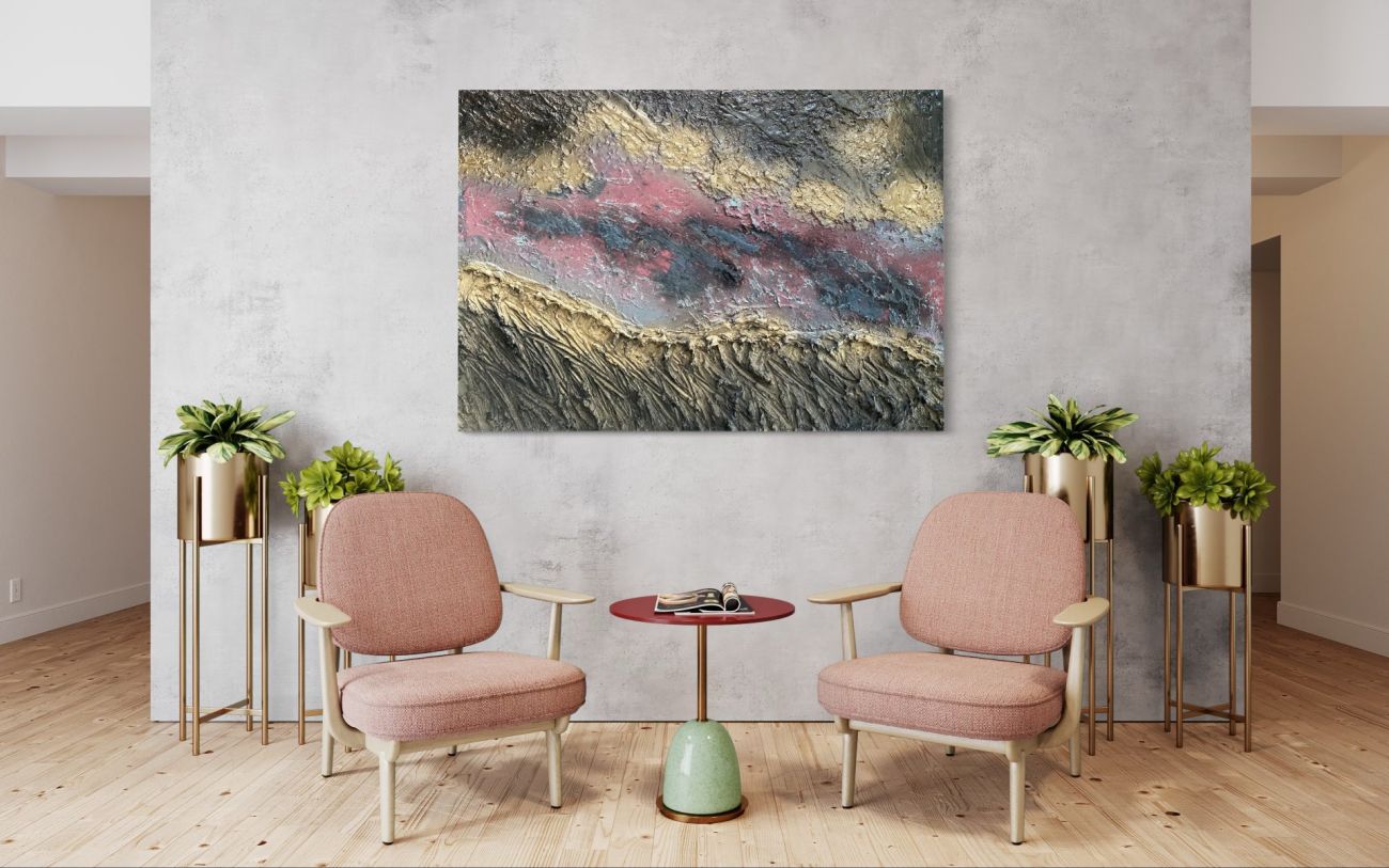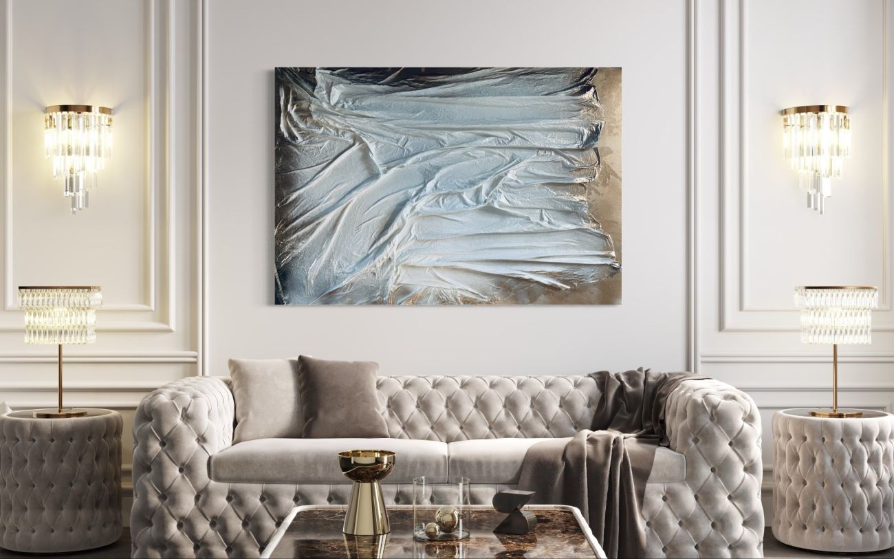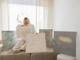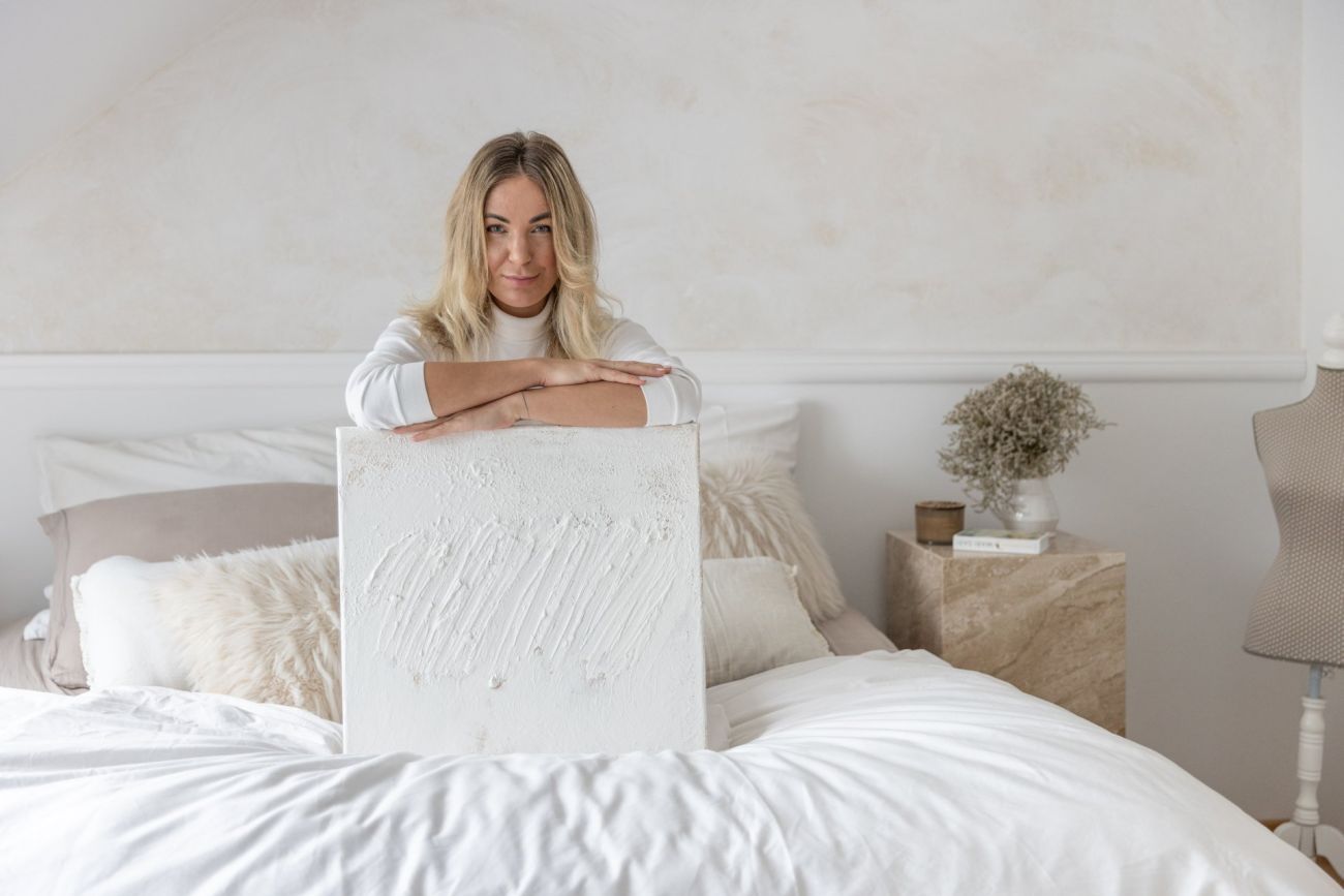 Ale každodenně mi přichází inspirace. Třeba nedávno jsme jela od klientky a v asfaltu jsme viděla krásné obrazce a měla jsem potřebu je namalovat. Nebo v Dubaji jsem fotila fotky omotaná malířskou folií, aby to bylo autentické, folii jsem poté zakomponovala do mého obrazu. Zkrátka jsem kreativní duše a ve všem si najdu inspiraci.“