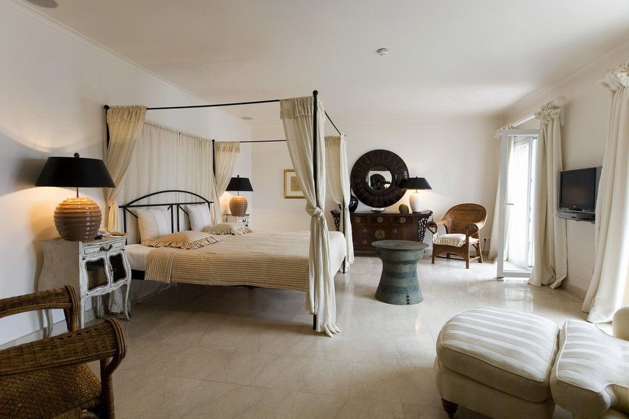 Vneste kouzlo do své ložnice a pořiďte sem rustikální sekretář, tmavou skříň nebo dřevěnou postel s nebesy. Na poličky vystavte velké cestopisné knihy, nebo ty s exotickými fotografiemi.