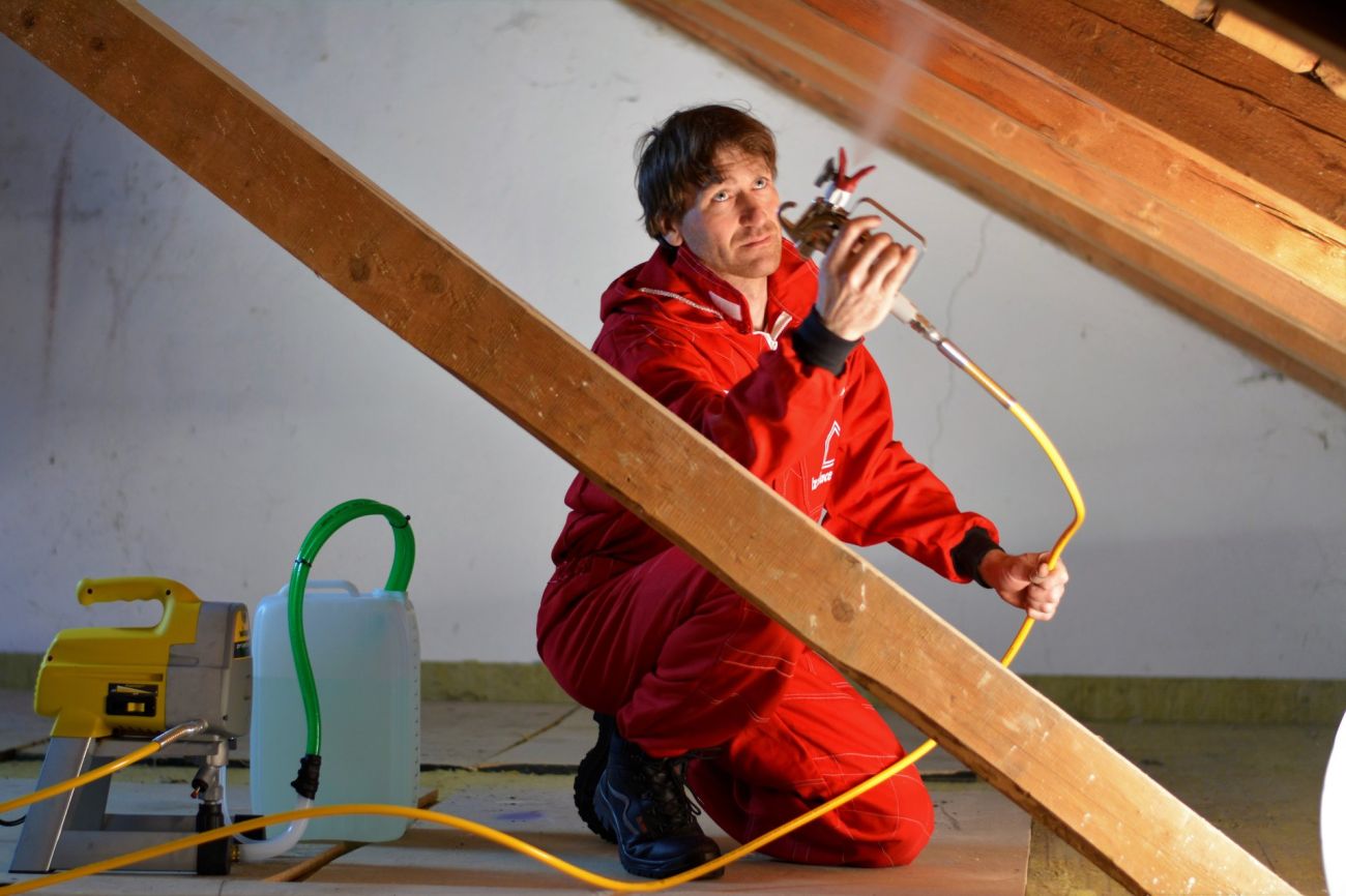 Na ošetření krovu se používají přípravky renomované německé společnosti REMMERS. Dřevěné části se nejprve důkladně očistí a následně se na ně aplikuje technologie tlakovým postřikem umožňující i aplikaci do hůře přístupných míst (trhliny na povrchu trámu, štěrbiny mezi trámy). Realizace je rychlá a dlouhodobá. Jedná se o šetrné a zdravotně nezávadné řešení.