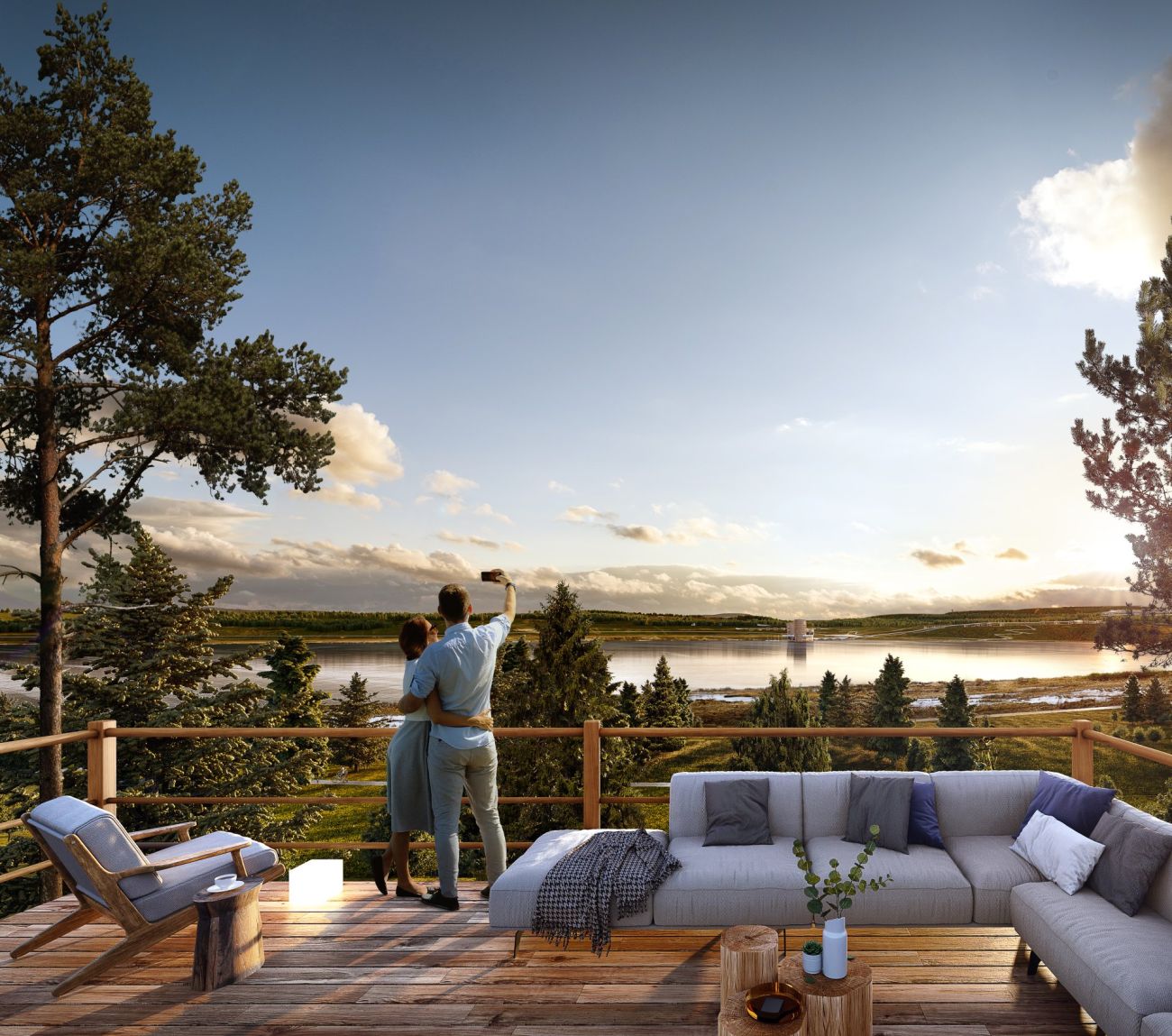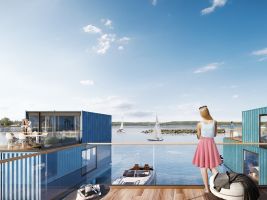 Na 2 000 hektarech vyrostou nové domy a apartmány s úchvatnými výhledy na jezero a hřebeny hor v pozadí. Vlajkovou lodí celé proměny pak bude bydlení na vodě. Vznikne zde například dům OSTROV. Jednat se bude o inteligentní budovu 21. století, která vyroste doslova z vody. Objekt bude totiž založen zhruba 16 metrů pod hladinou jezera. Nacházet by se zde mohlo například vědecké pracoviště zabývající se přeměnou hnědouhelných pánví, ale i ubytování, bydlení či kanceláře. Pro vznik nové městské čtvrti jsou zde již připravené terénní a břehové úpravy či dopravní infrastruktura. Chybět nebude ani marina, přístav, náměstí, molo a pěší promenáda s obchody a restauracemi. Přibydou solitérními stromy a stromořadím. V okolí pak vzniknou cyklostezky a vyhlídky. První změny by mohly být vidět už do tří let. Nedaleko jezera leží pak také lom Jiří, který by v budoucnu mohl být rovněž zatopen a proměněn na přívětivou vodní plochu.
