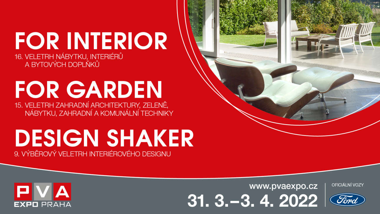 Startuje jedna z nejvýznamnějších událostí v oboru bydlení, dnes začíná veletrh FOR INTERIOR, tentokrát souběžně ještě s veletrhy FOR GARDEN a DESIGN SHAKER. Tato akce přinese kompletní informace i produkty od vyhlášených značek na poli bydlení a zařizování interiérů. Akce bude probíhat do 3. dubna na výstavišti PVA EXPO PRAHA a vy máte nyní možnost stáhnout si vstupenku na tuto událost zdarma.
