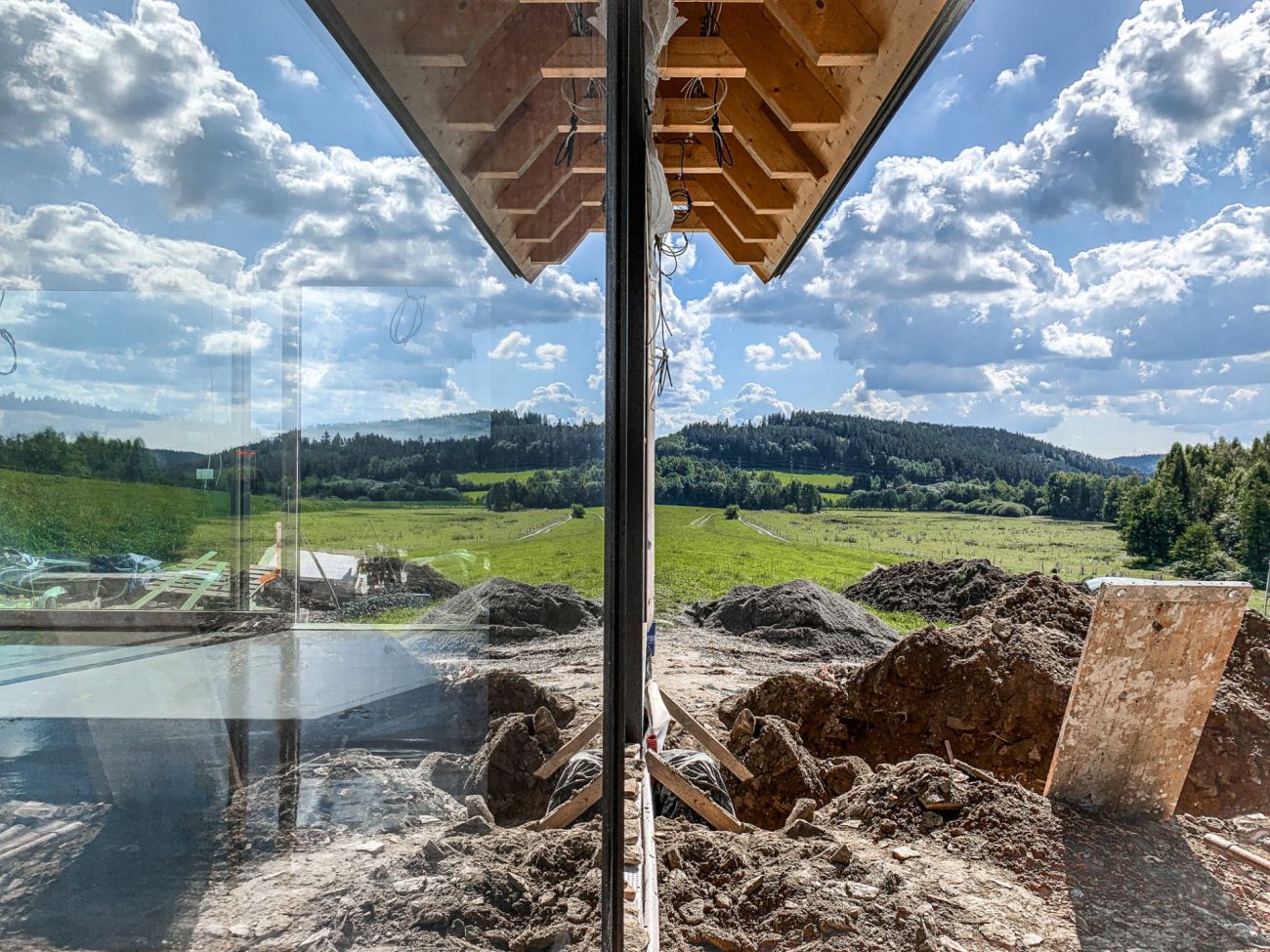 Ostrovním dům, který vzniká u Vyššího Brodu v Jižních Čechách je natolik soběstačný, že nepotřebuje žádné přípojky k inženýrským sítím. Celý projekt vzniká už několik let. Od prvních plánů v roce 2016, po zahajovací výkopové práce loni na podzim. Teď už je projekt v takové fázi, že se může začít malovat a uklízet.