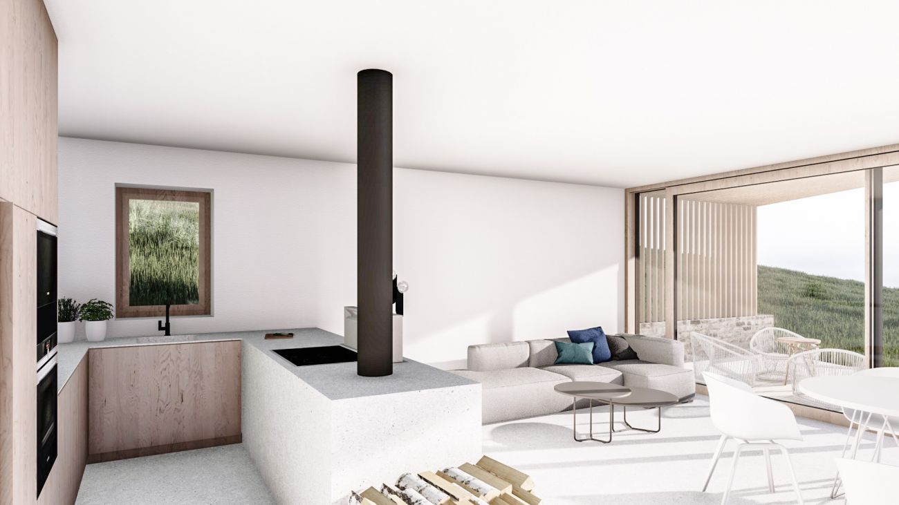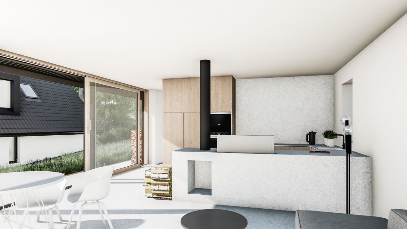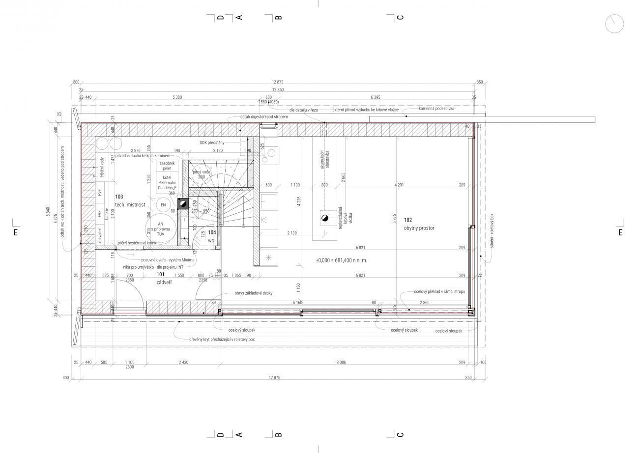 Dům bude stát na samotě v roztroušené zástavbě Hodslavského potoka, poblíž lyžařského areálu Kramolín v Jižních Čechách. „Naším cílem bylo navrhnout malý, pokorný, poctivý domek s dlouhou životností. I proto jsme se rozhodli pro celokeramickou variantu. Vybrané cihly budou minimalizovat spotřebu energie a pomáhat udržovat tepelný komfort v zimě i v létě, navíc všechny prokazatelně pocházejí z České republiky. Tím největším oříškem je ale samozřejmě rozchodit dům komfortně bez přítomnosti inženýrských sítí. Na to už byl potřeba poměrně široký technický tým. Máme obrovské štěstí na lidi, kteří nám cestou pomáhali a pomáhají,“ popsal základní parametry stavby Pavel Podruh, zakladatel projektu.