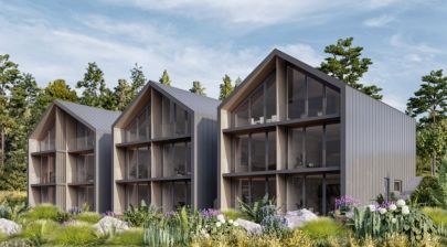 Architekti z No Limits Design zde navrhli perfektní dispoziční řešení všech 18 apartmánů, které na třech podlažích důmyslně propojuje vnitřní schodiště. Prosklená přední stěna dodává budově luxusní vzhled a budoucím obyvatelům apartmánů poskytne krásný výhled na přehradu.