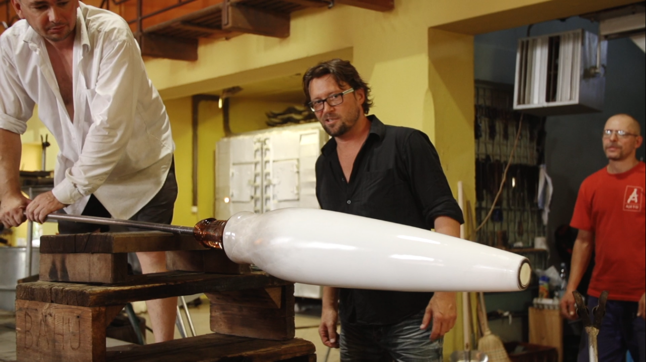 TechnoArt k tvorbě skleněné podnože oslovil sklárnu Ajeto! Sklářská huť Ajeto! od roku 2009 jako první sklárna na světě s ruční výrobou skla nahradila tradiční spalování směsi vzduch-palivo novou technologií kyslíko-palivového spalování. Díky tomu společnost Ajeto! dosahuje lépe protavené skloviny, větší stability v peci a lepší konzistenci barev.