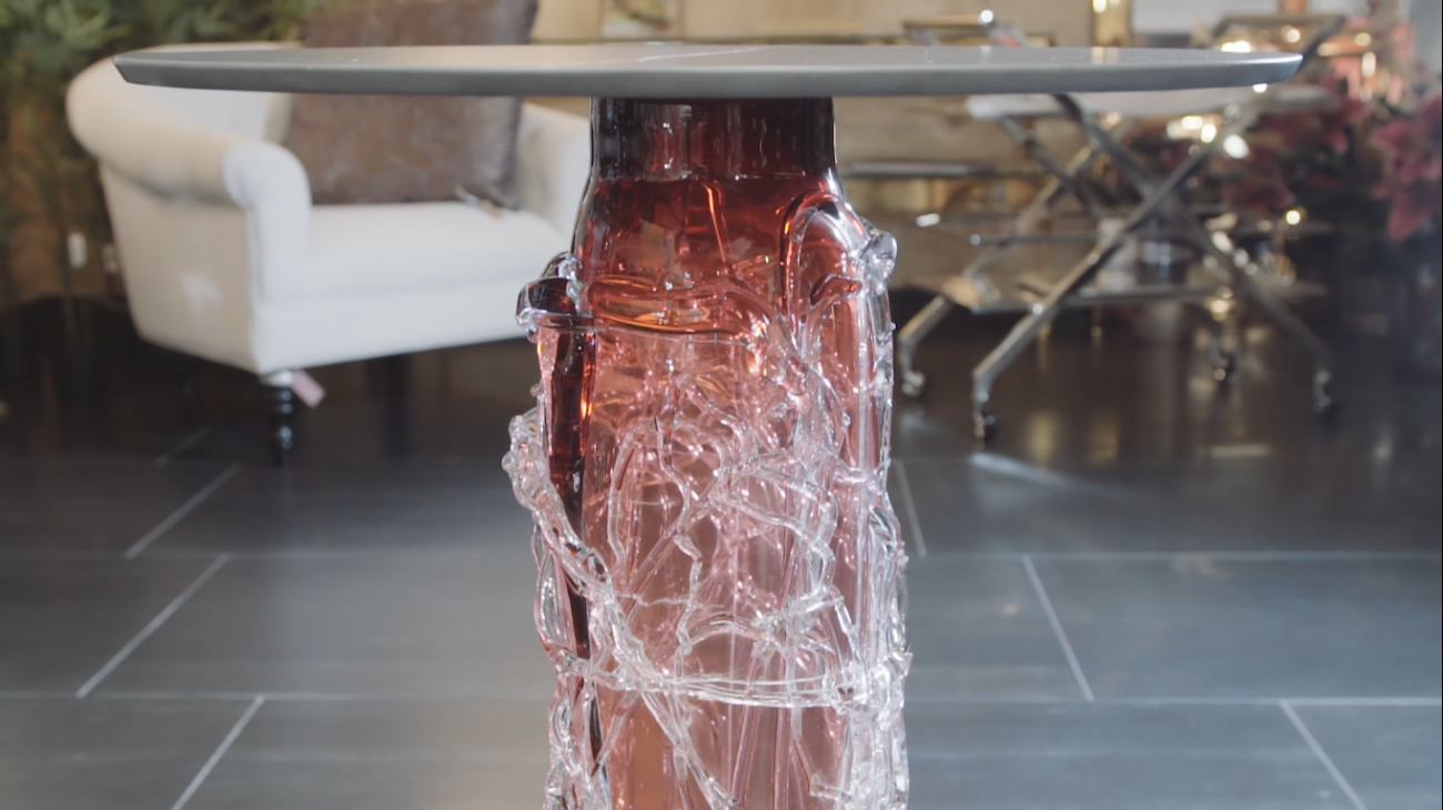 Závod TechnoArt nedaleko Plzně, který se soustředí na zpracování obkladů a dlažeb, vyrobil keramickou desku na stůl. Díky tomu, že se firma TechnoArt soustřeďuje na zakázkovou atypickou výrobu, dokázala sloučit keramickou desku spolu se skleněnou ručně vyrobenou podnoží stolu. Z 25 ks podnoží bylo vyrobeno několik čistě bílých se zajímavým brusem, ostatní nohy jsou v různých barvách, kde tyto barvy byly samostatně pro danou kolekci míchány. Následně se na noze, která je ručně foukaná ze silnostěnného skla, natavují jemné pavučiny skla v různé textuře a hrubosti. V současné době jsou nohy uloženy ve výrobním závodě TechnoArt a podle požadavků investora se podle interiéru vybírá barevnost desek, jejich velikost a tvar. Jedná se o individuální práci s klientem, kdy ví, že obdobných typů je vyrobeno 25, ale jeho typ je jednoznačně originální.