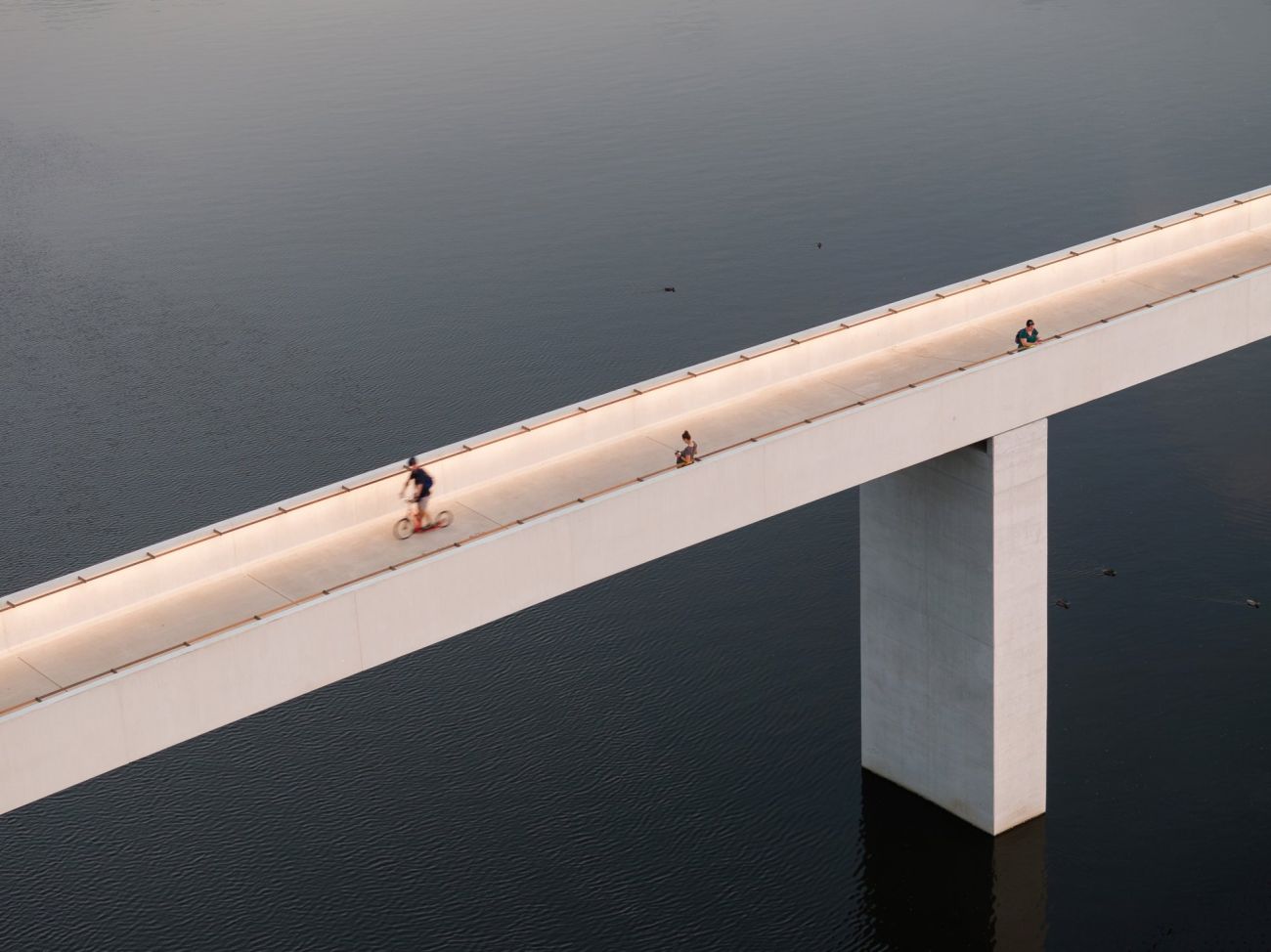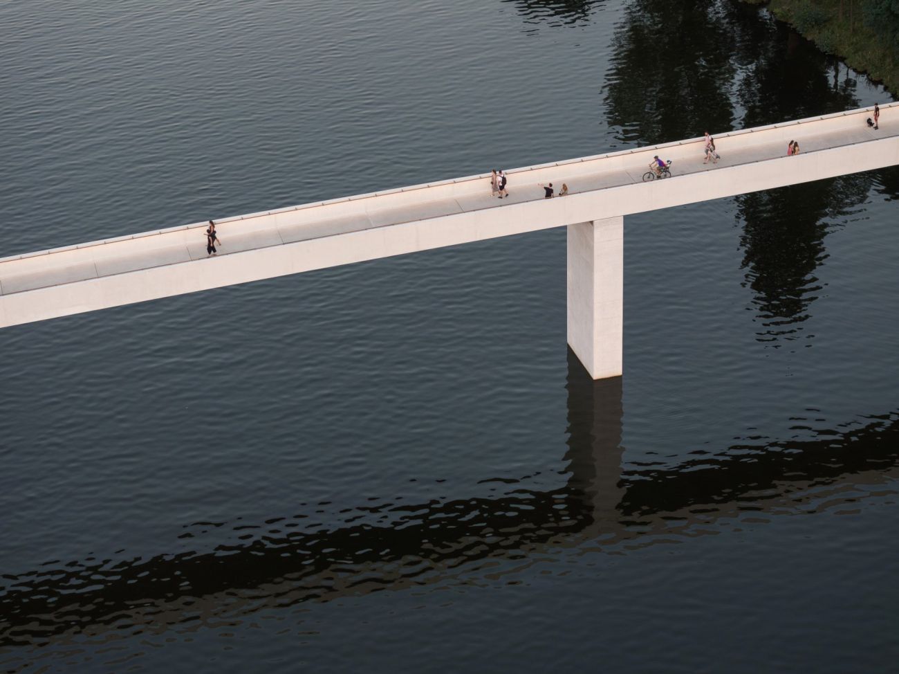Bílá lávka do hlavního města přinesla minimalistický design, který do okolí ideálně zapadl.