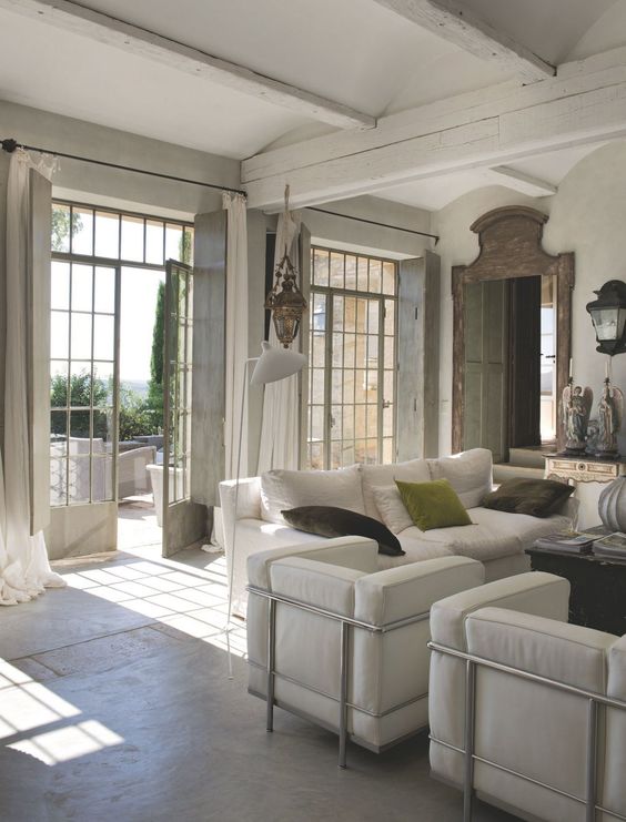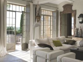 Pokud máte na stropech trámy, máte vyhráno. Stejně tak se k tomuto stylu hodí světlá podlaha s jemným dekorem dřeva. Rozhodně sem nepatří smrkové dřevo se suky nebo modřín. Dominantu tvoří masivní nábytek běleného nebo lakovaného dřeva, lehké oprýskání a patina ho jen zatraktivní. Poličky a vitríny můžou být otevřené, aby byl vidět jejich obsah. Moderní interiéry v Provence stylu si osvojily barokní nábytek, především křesla a pohovky. Stejně tak osvětlení volte v zámeckém stylu. Krásně se tak skloubí venkovský a městský styl života.