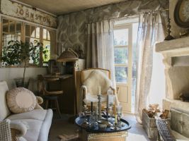 V Provence interiéru můžete použít i hodně kamene. Důležité jsou pak doplňky, kterých je tady mnoho. Kupte svícny, svíčky, lucerny, nejrůznější stolní lampy, závěsy do oken a spoustu polštářů a přehozů. Vhodným doplňkem jsou i proutěné koše, truhly, lavičky a podobné kousky nábytku.