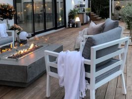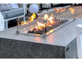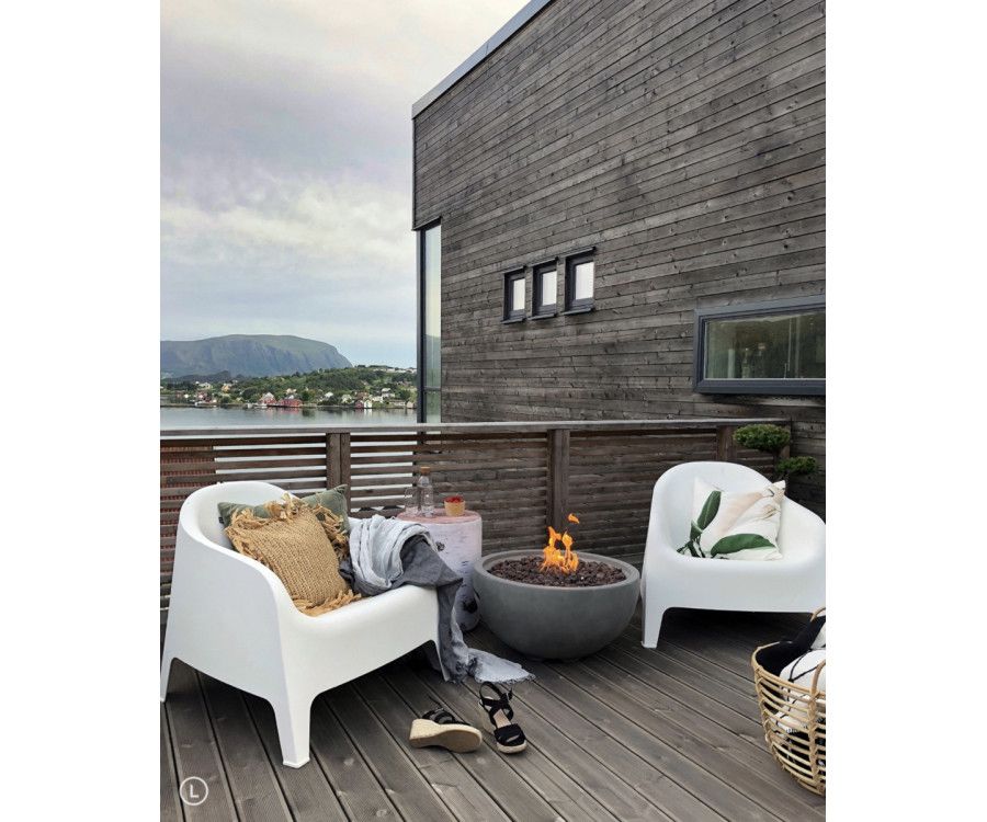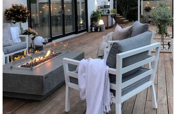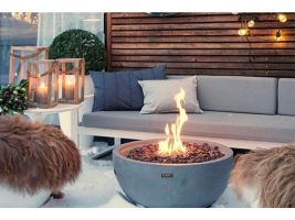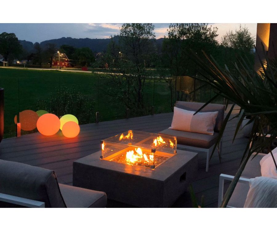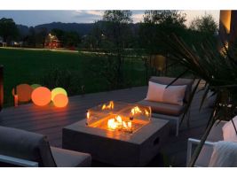 Například pro nízké sezení je ideální stylové plynové ohniště vyrobené z lehkého betonu vyztuženého skelnými vlákny. Jedná se o vysoce kvalitní materiál, který se v exteriéru nepoškozuje a je odolný UV záření a povětrnostním vlivům.