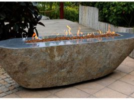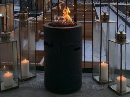 Zajímavou vychytávkou jsou pak stoly, ve kterých je ohniště přímo jejich součástí. Kombinace stolu a ohně pak dokáže vytvořit jedinečnou atmosféru a harmonii. Navíc tak nemusíte řešit kompromis, pokud chcete sedět v teple kolem ohně a mít si kde položit skleničku či něco k zakousnutí. Stoly s integrovaným ohništěm jsou vyrobeny s vysokopevnostního kompozitního betonu, také vyztuženého skelným vláknem, který odolává povětrnostním vlivům a zachovává vysokou životnost a barevnou stálost. Napájení plynem zajišťuje běžná propan-butanová plynová láhev. Při této variantě se většinou plynová láhev nedá vložit dovnitř stolu, takže se hadicí odvede pod originální kryt plynové láhve, které dodáváme ve stejném designu a materiálu jako je stůl.