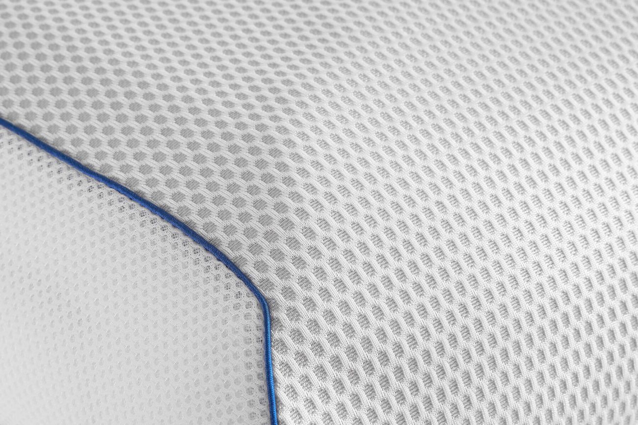 Součástí konstrukce je i potah z inovativní textilie, která aktivně reguluje teplotu a vytváří příjemný chladivý efekt. Tím napomáhá rychlejšímu usínání a hlubšímu spánku. Díky ventilačnímu lemu zůstává polštář dokonale prodyšný, takže hlava i šíje mají po celou noc dostatek čerstvého vzduchu.
