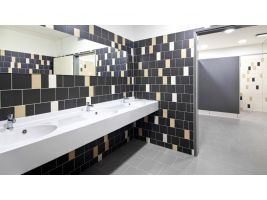 Pokud jste si tedy vybrali dvě výrazné barvy, zbytek můžete vyplnit, například, bílými či světle šedými dlaždicemi. Myslete i na výběr doplňků a koupelnového nábytku, který se bude vždy muset přizpůsobit barvám podlahy a stěn.