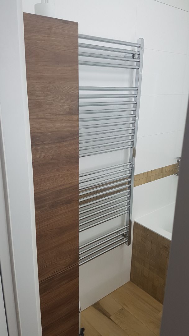 Tip: dřevo v kombinaci s bílým obkladem může vytvořit uklidňující atmosféru