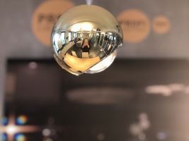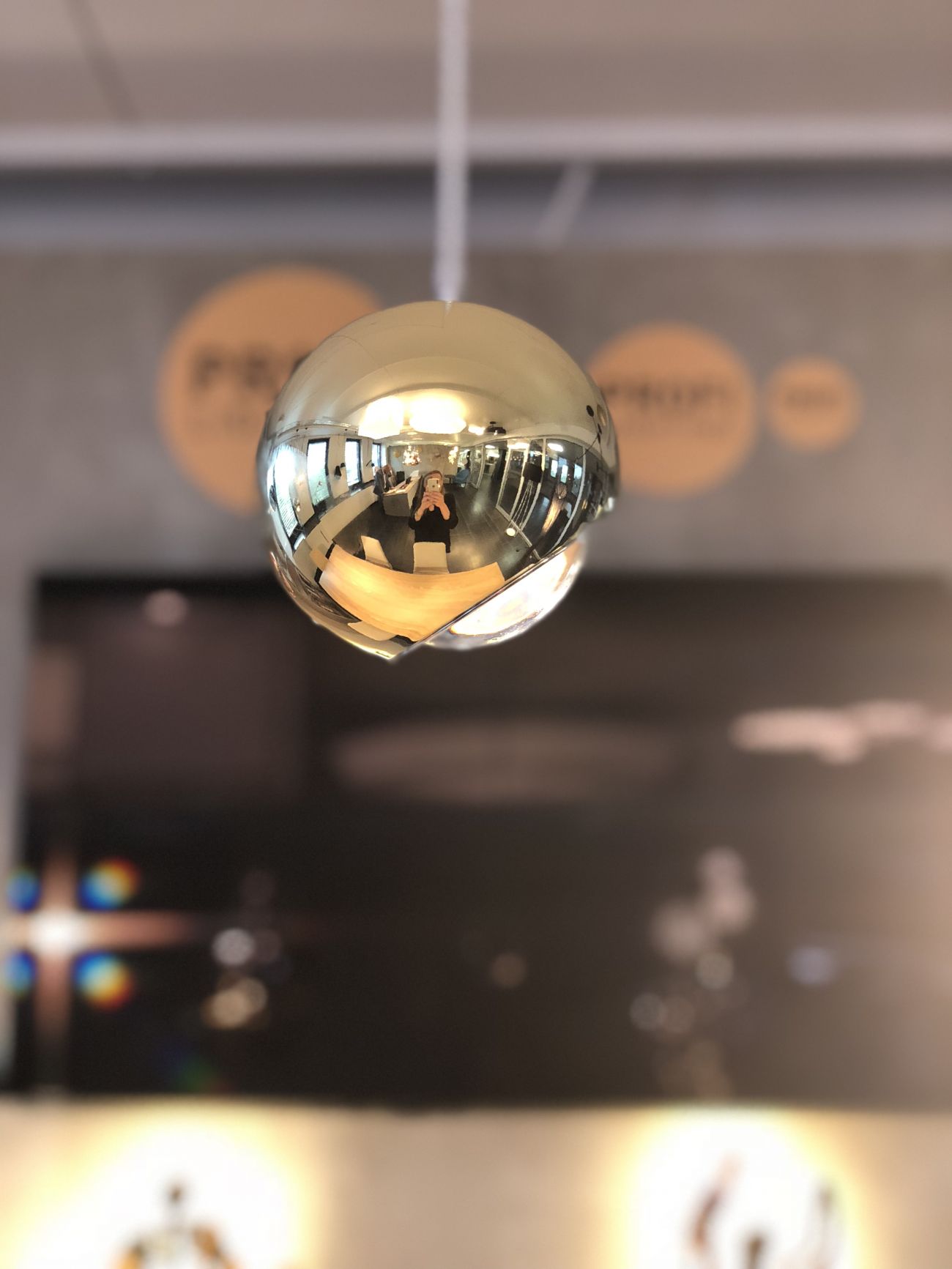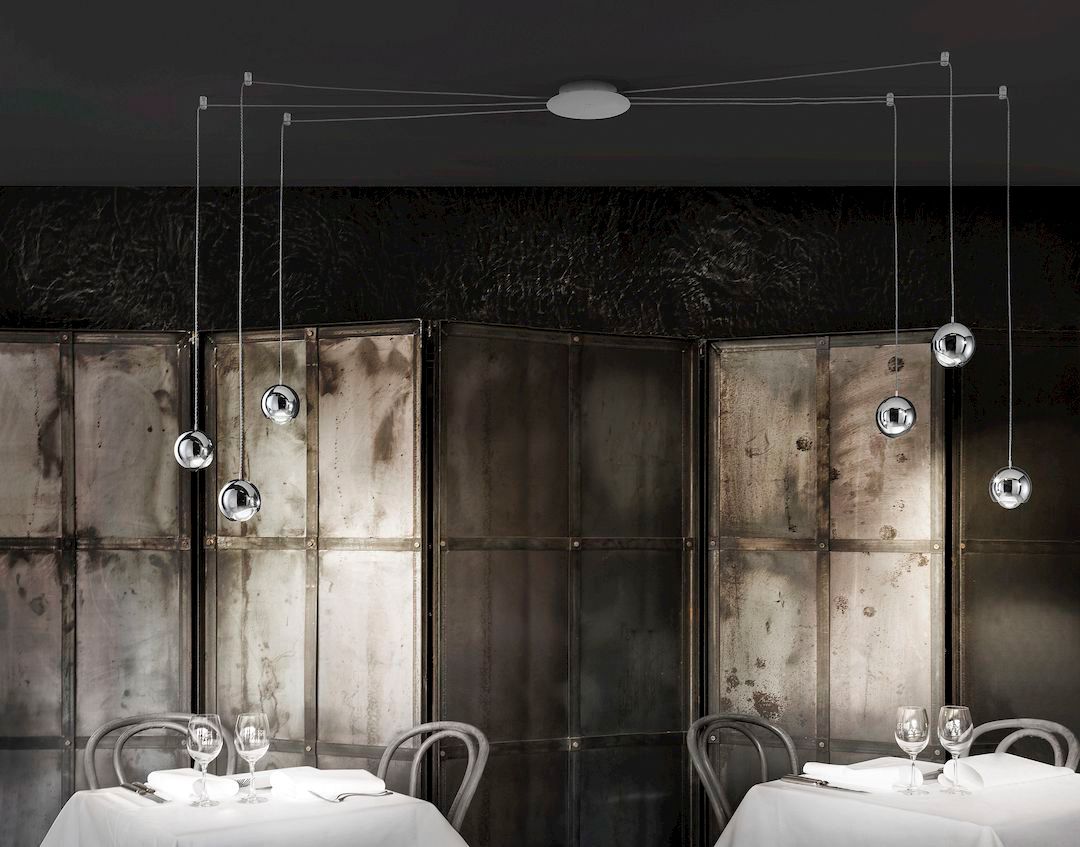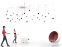 Na několika drátových provázcích připomínajících pavoučí nohy vysely svítící koule, které byly ve zlatém, černém nebo růžovém provedení.