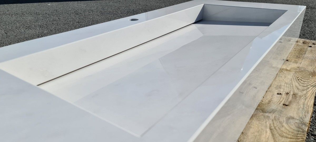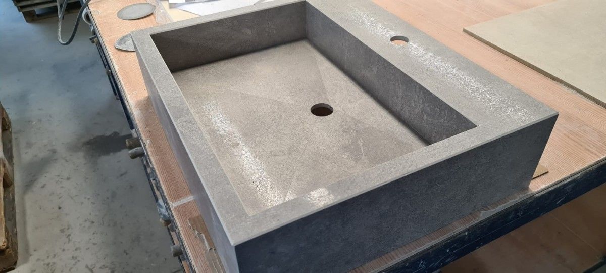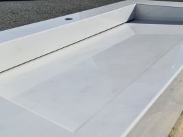 Umyvadla ve fotogalerii byla vyhotovena ve výrobním závodě TechnoArt a byla lepena na kamenické rohy.